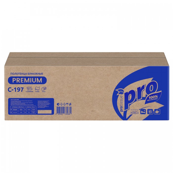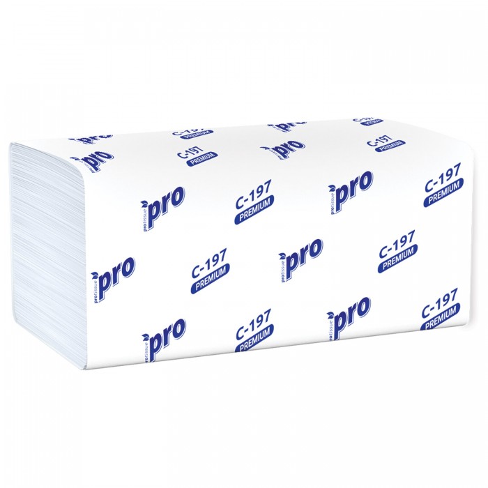 Полотенца бумажные 200 шт., PROtissue (H3) PREMIUM, 2-слойные, белые, КОМПЛЕКТ 20 пачек, 22х21 см, V-сложение, С197, C197