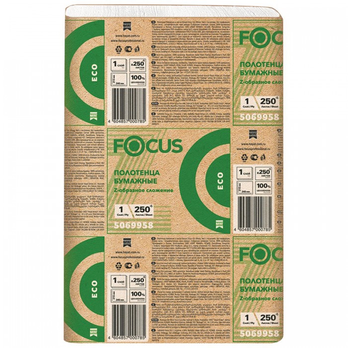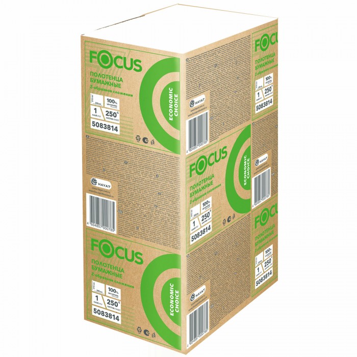 Полотенца бумажные 250 шт. FOCUS (Система H2) Eco, 1-слойные, белые, КОМПЛЕКТ 12 пачек, 24х21,5, Z-сложение, 5083814/5069958