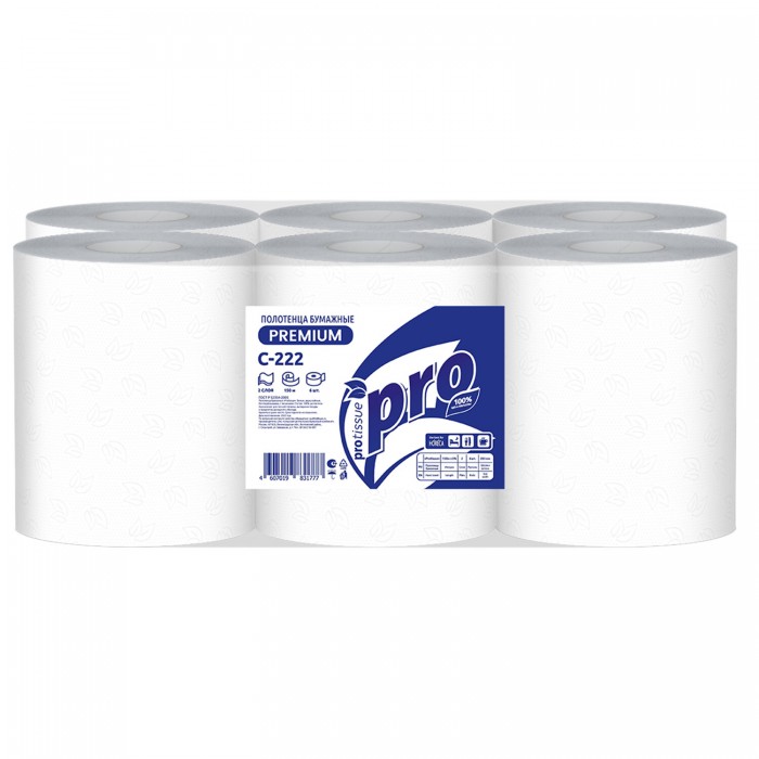 Полотенца бумажные рулонные 150 м, PROtissue (H1) PREMIUM, 2-слойные, белые, КОМПЛЕКТ 6 рулонов, С222