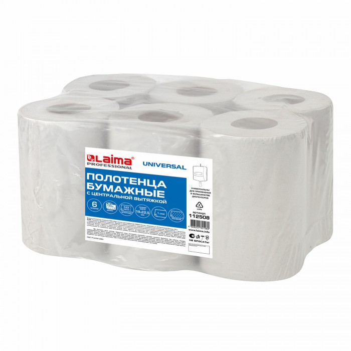 Полотенца бумажные LAIMA UNIVERSAL изготовлены из экологически чистого макулатурного сырья. Удаляемая втулка предполагает использование полотенец в диспенсерах с центральной вытяжкой, в местах, где требуется протирать и руки, и поверхности.