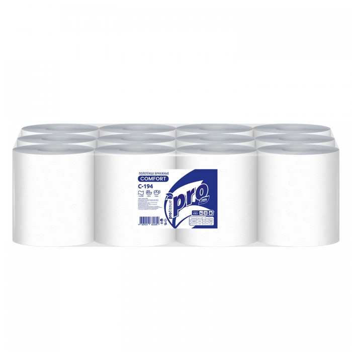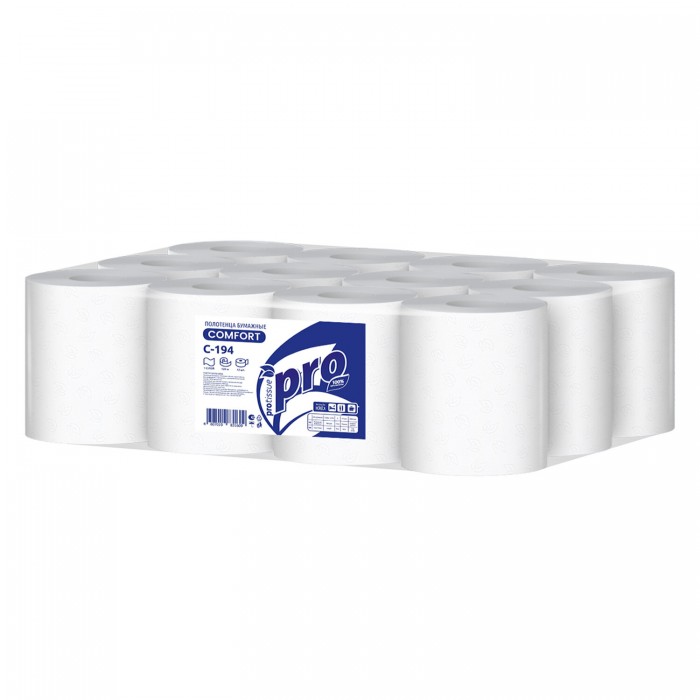 Полотенца бумажные с центральной вытяжкой 120 м, PROtissue (M1) COMFORT, 1-слойные, белые, КОМПЛЕКТ 12 рулонов, С194, C194