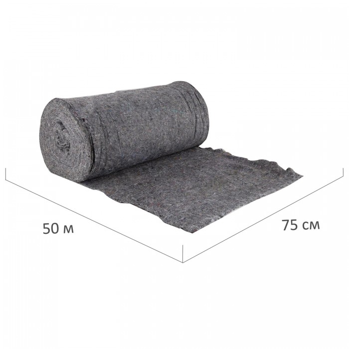 Полотно ХПП холстопрошивное ПЛОТНОЕ серое, 0,75х50 м, 180(±10) г/м2, шаг 2,5 мм, LAIMA Стандарт, 605541