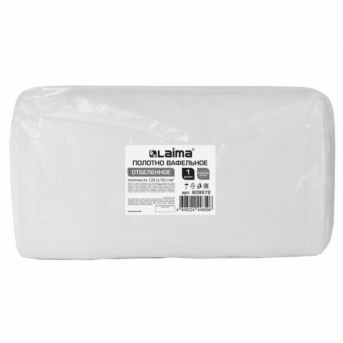 Полотно ВАФЕЛЬНОЕ отбеленное, рулон 0,40х50 м, в пакете, плотность 120 (±10) г/м2, LAIMA, 609572