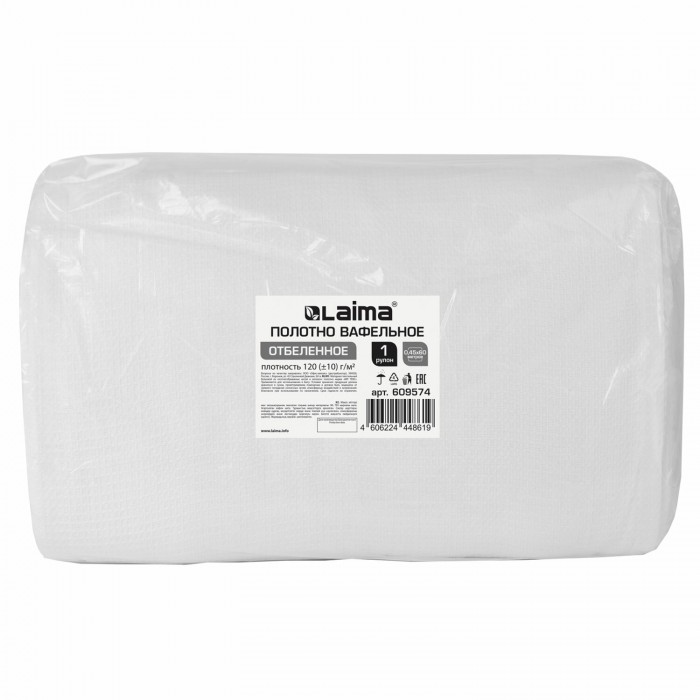 Полотно ВАФЕЛЬНОЕ отбеленное, рулон 0,45х60 м, в пакете, плотность 120 (±10) г/м2, LAIMA, 609574