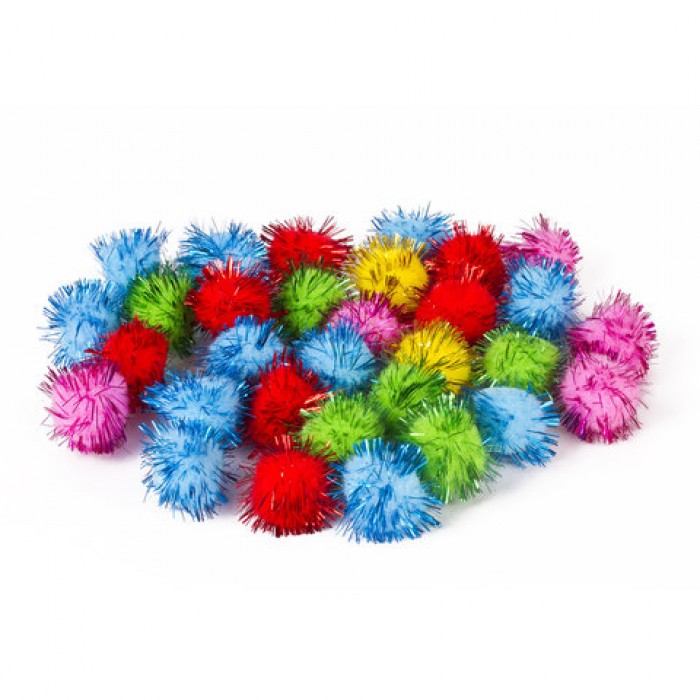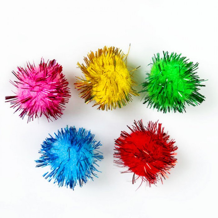 Помпоны для творчества, блестящие, 5 цветов, 25 мм, 30 шт., ОСТРОВ СОКРОВИЩ, 661425