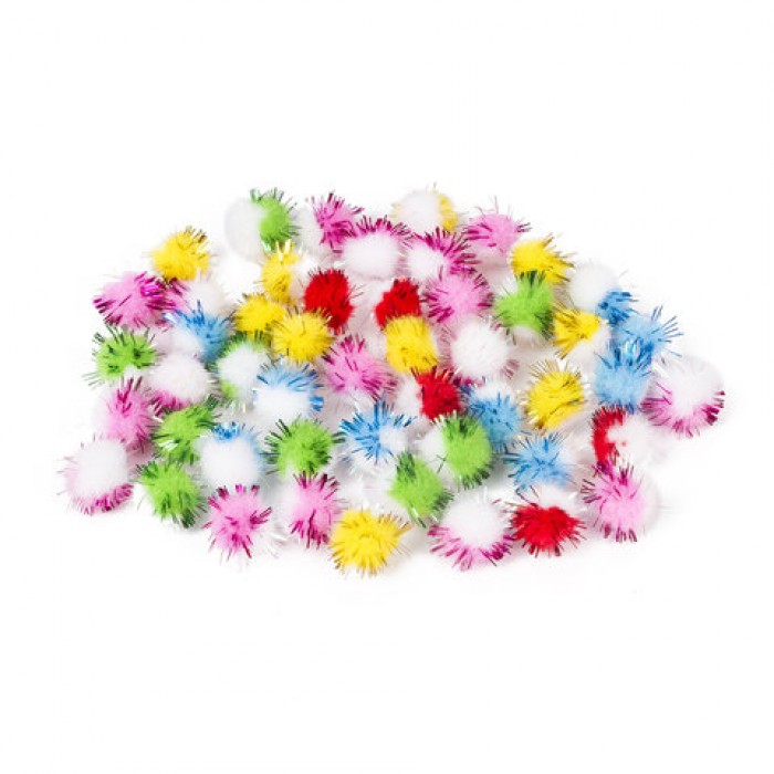 Помпоны для творчества, многоцветныее, блестящие, 6 цветов, 15 мм, 50 шт., ОСТРОВ СОКРОВИЩ, 661434
