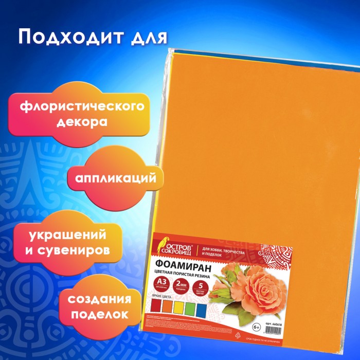 Товар находится в категориях: Товары для офиса Творчество, хобби Материалы и инструменты для творчества Фетр, фоамиран, мягкий пластик Фоамиран, мягкий пластик