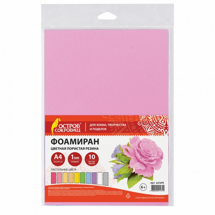 Цветная пористая резина (фоамиран) ОСТРОВ СОКРОВИЩ предназначена для хобби, творчества и рукоделия.