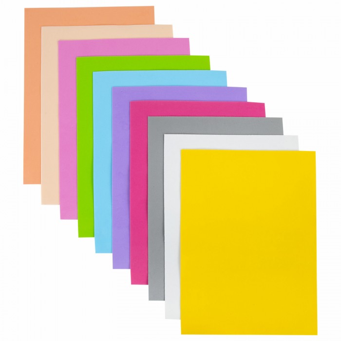 Пористая резина/фоамиран А4, 1 мм, 10 листов, 10 цветов, пастельные цвета, ОСТРОВ СОКРОВИЩ, 661695