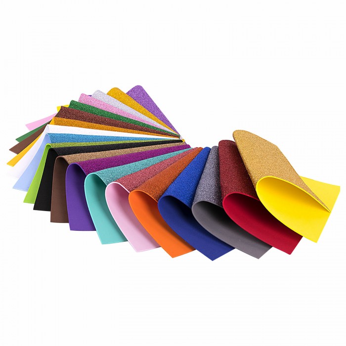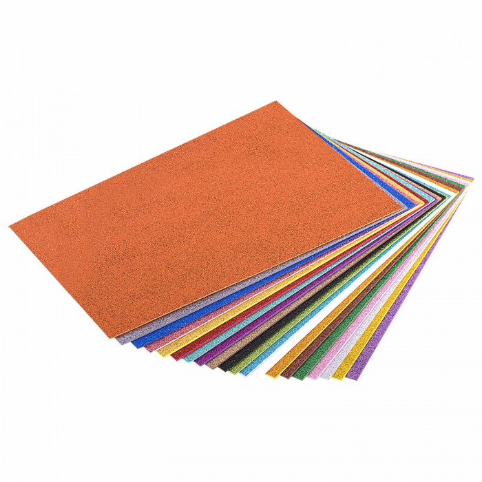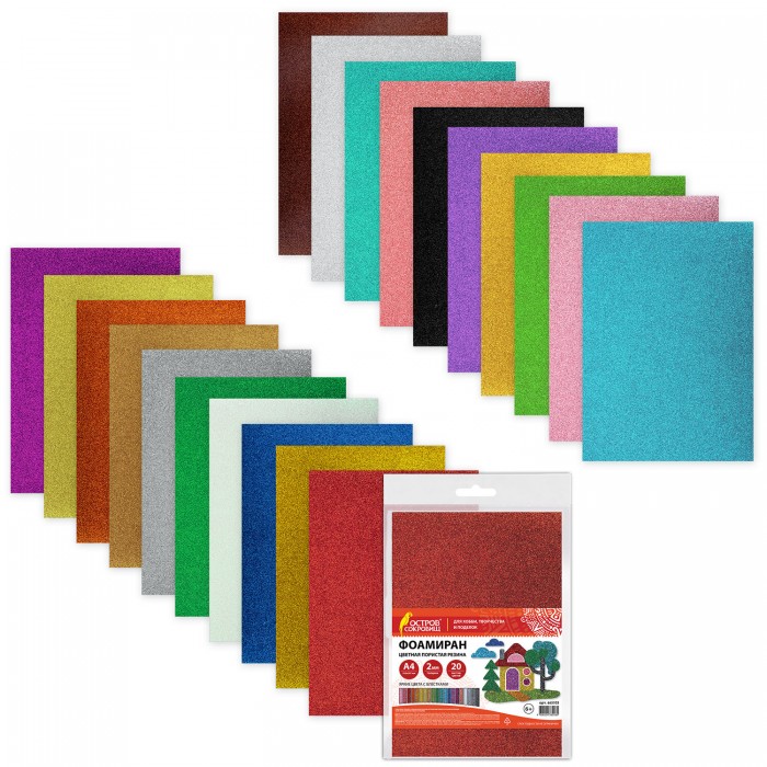 Пористая резина/фоамиран А4, 2 мм, 20 листов, 20 цветов, яркие цвета, блестки, ОСТРОВ СОКРОВИЩ, 665103