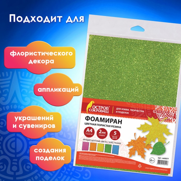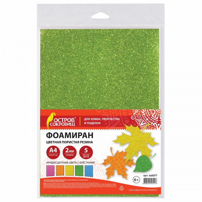 Цветная пористая резина (фоамиран) ОСТРОВ СОКРОВИЩ предназначена для хобби, творчества и рукоделия.