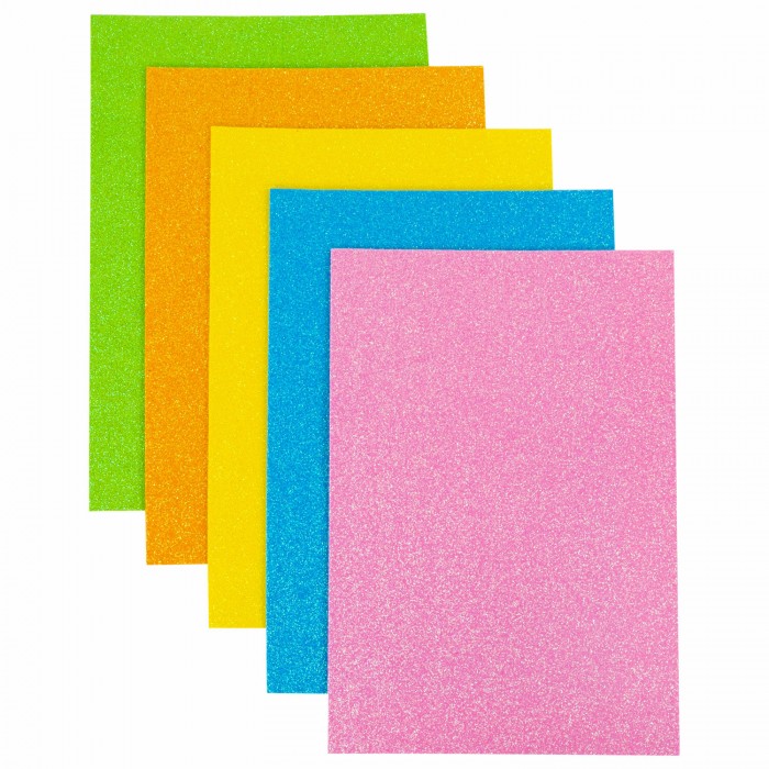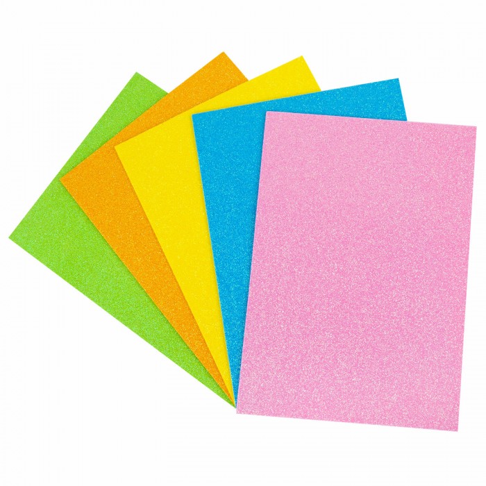 Пористая резина/фоамиран А4, 2 мм, 5 листов, 5 цветов, пастельные цвета, блестки, ОСТРОВ СОКРОВИЩ, 660077