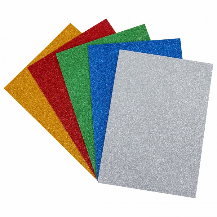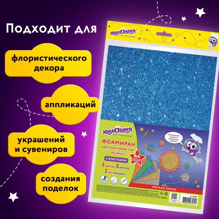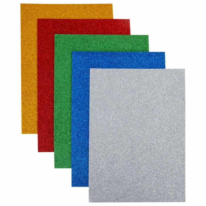 Пористая резина/фоамиран А4, 2 мм, 5 листов, 5 цветов, яркие цвета, блестки, ЮНЛАНДИЯ, 662052