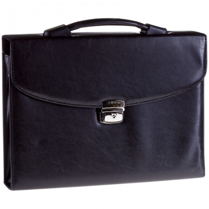 Портфель OfficeSpace "Pulsar", кожзам, черный, 3 отделения, метал. замок, с ремнем