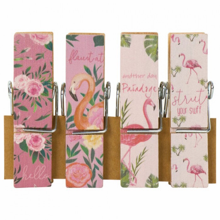 Прищепки декоративные широкие "Фламинго", 4 штуки, 7,2 см, ассорти, ОСТРОВ СОКРОВИЩ, 662678