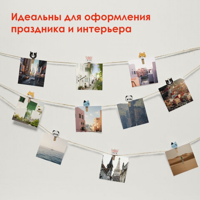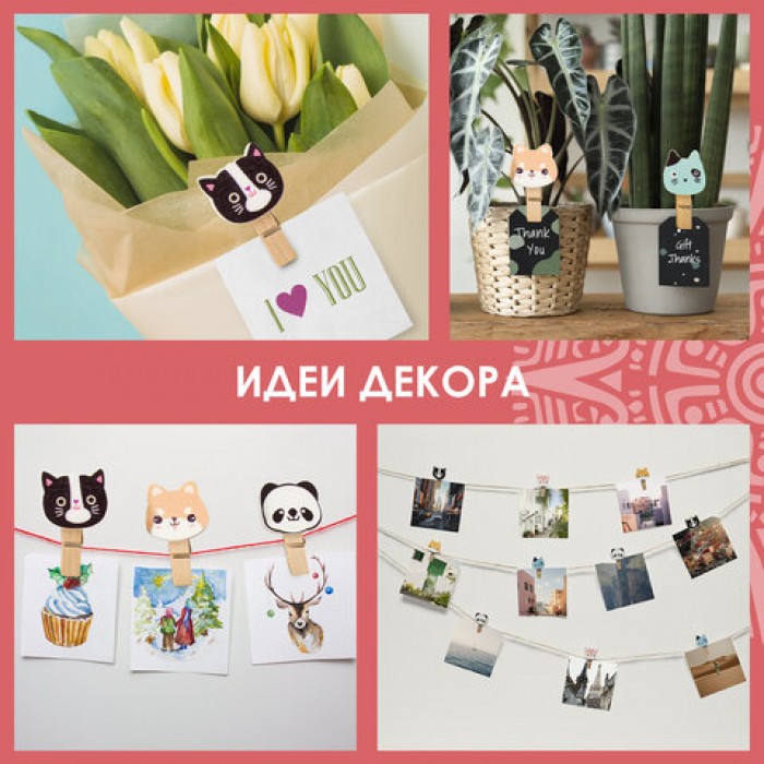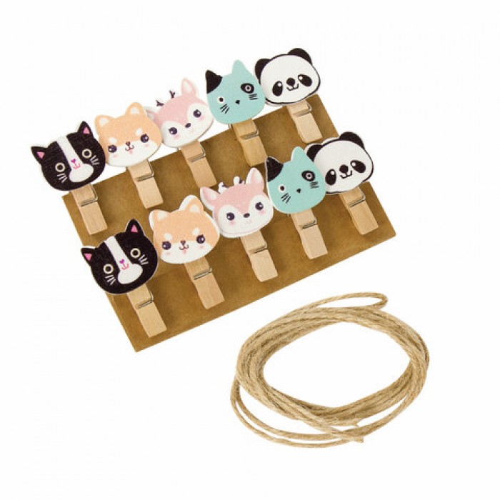 Прищепки декоративные "Забавные животные", 10 штук, 3,5 см, ассорти, со шпагатом, ОСТРОВ СОКРОВИЩ, 662672