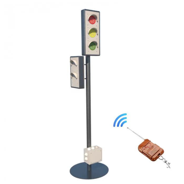 - Беспроводной учебный светофор на стойке высота 1800 мм.— 1 шт. Размеры транспортной секции 450*190*60 мм. Размер пешеходной секции 300*190*60 мм. Пластик АБС толщиной 3 мм. Козырьки из пластика толщиной 2 мм. Влагозащищенные светодиоды 12 вольт