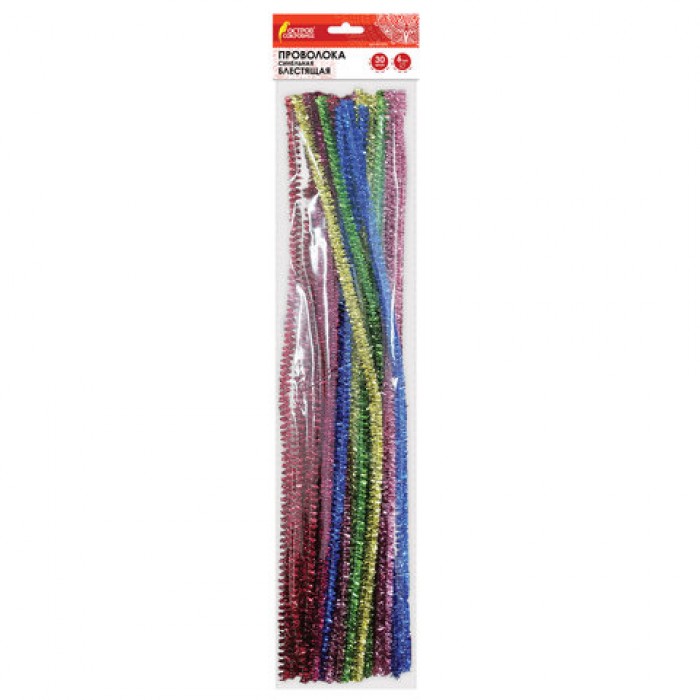 Проволока синельная для творчества "Блестящая", 6 цв., 30 шт., 0,6х30 см, ОСТРОВ СОКРОВИЩ, 661522
