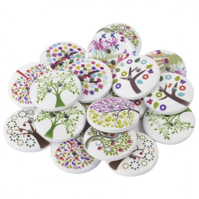 Пуговицы декоративные "Деревце", дерево, 20 мм, 18 шт., ассорти, ОСТРОВ СОКРОВИЩ, 661418