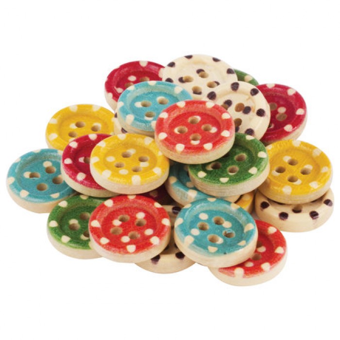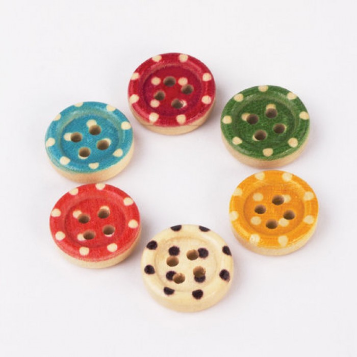 Пуговицы декоративные "Горошек", дерево, 13 мм, 24 шт., 6 цветов, ОСТРОВ СОКРОВИЩ, 661414