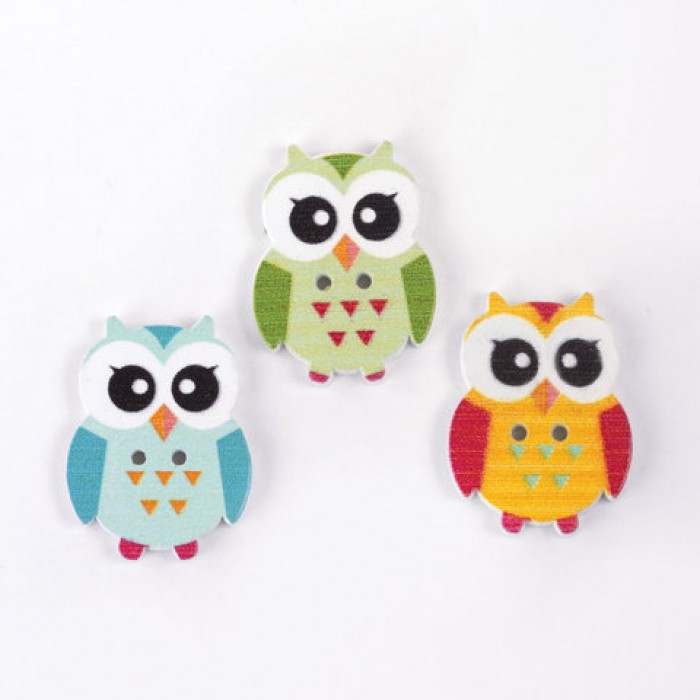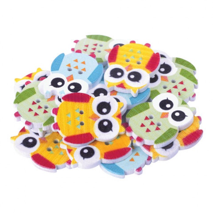Пуговицы декоративные "Совята", дерево, 20х25 мм, 18 шт., ассорти, ОСТРОВ СОКРОВИЩ, 661420