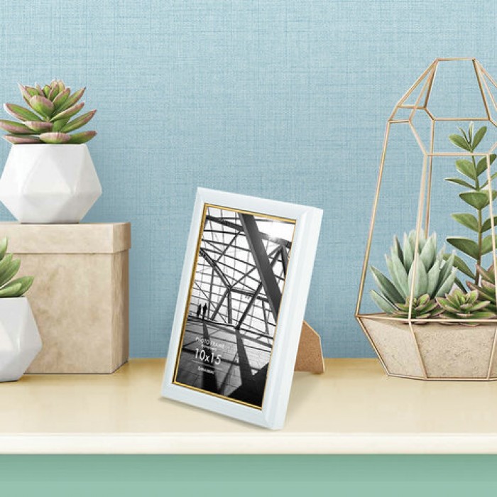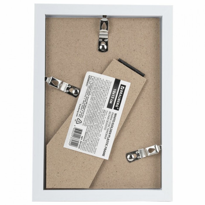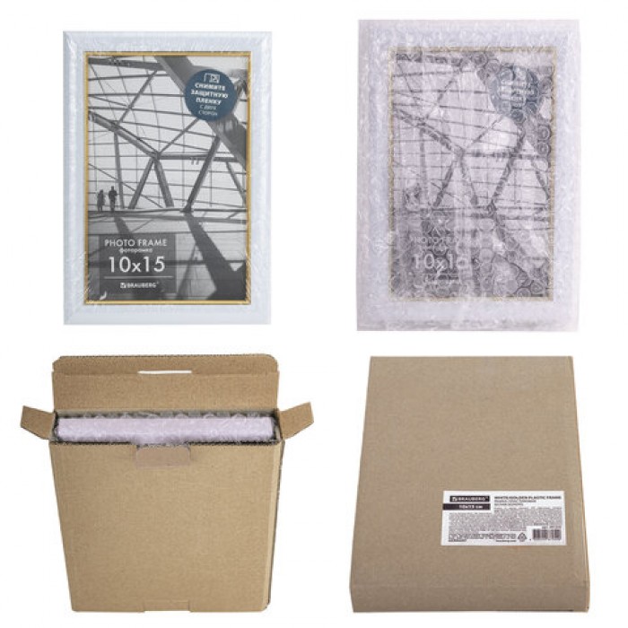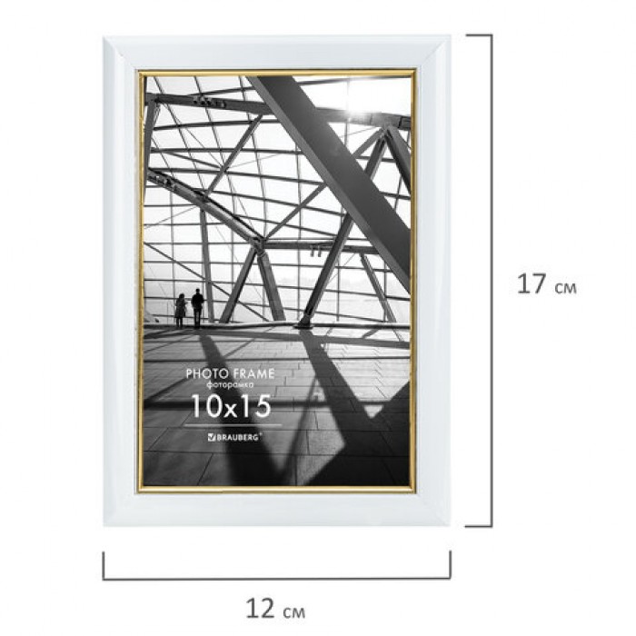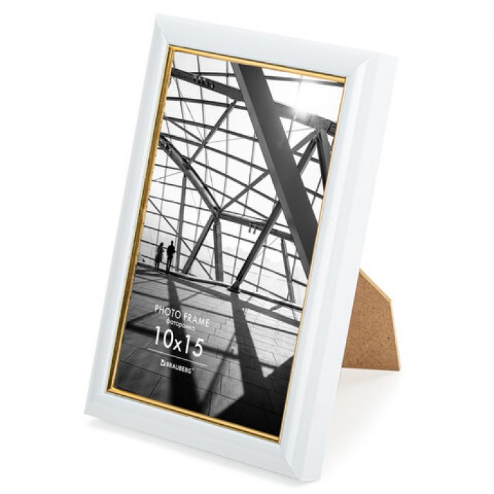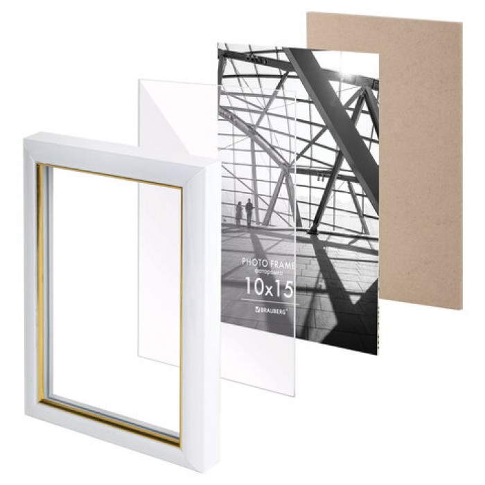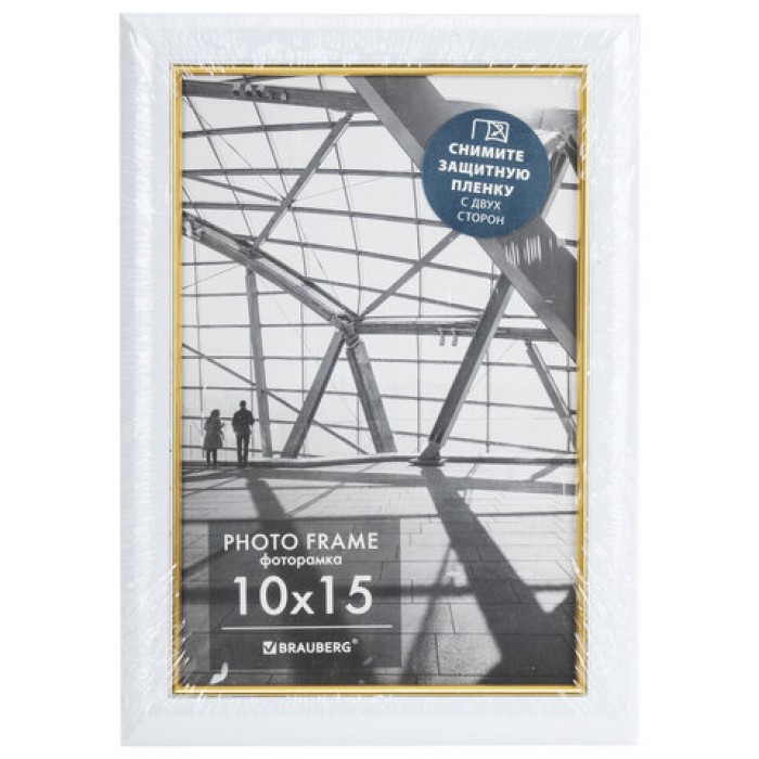 Рамка 10х15 см небьющаяся, багет 14,6 мм, пластик, BRAUBERG "Original Line", белая/золото, 391235
