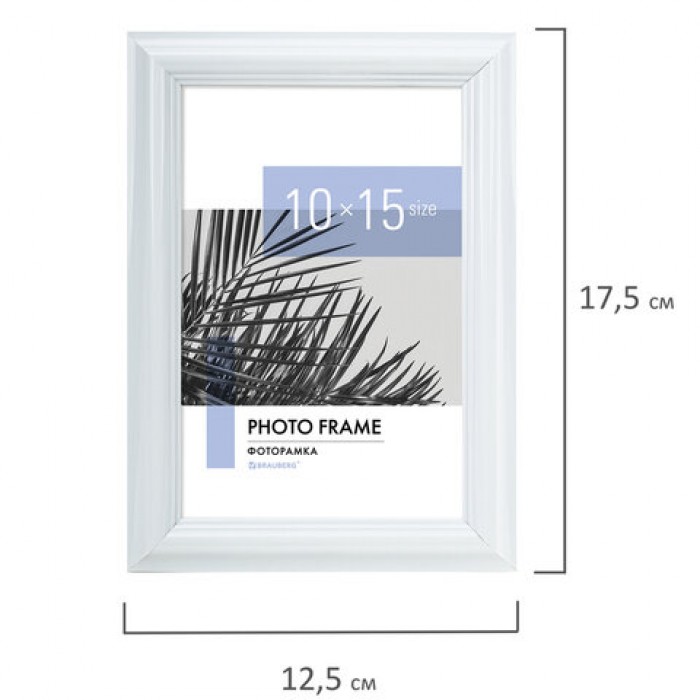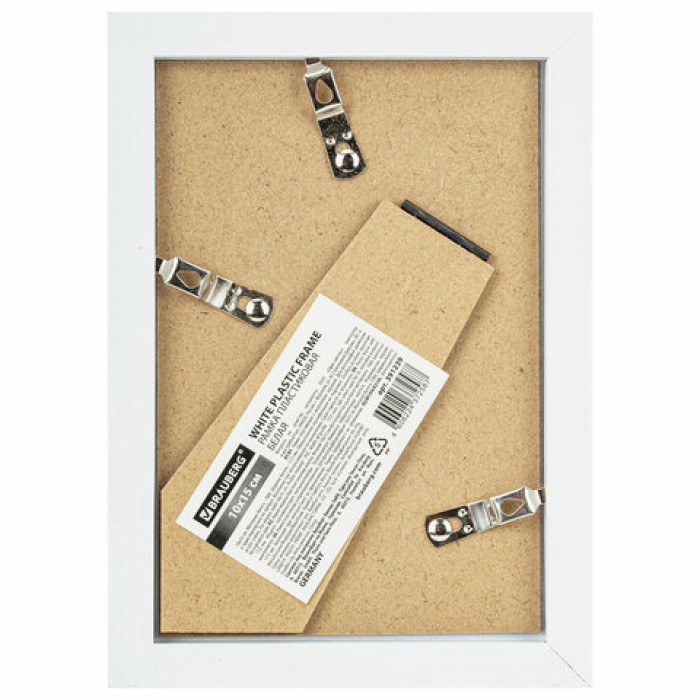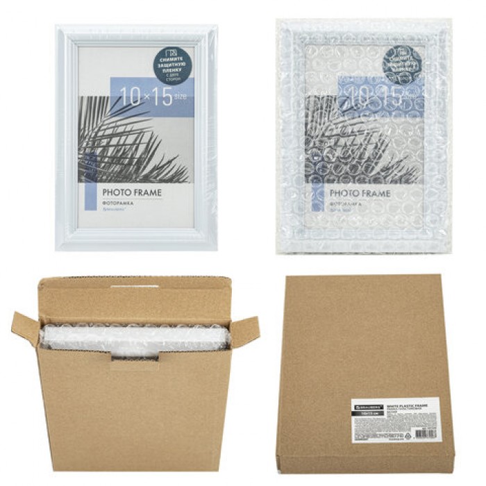 Рамка 10х15 см небьющаяся, багет 17,5 мм, пластик, BRAUBERG "Colorful", белая, 391239