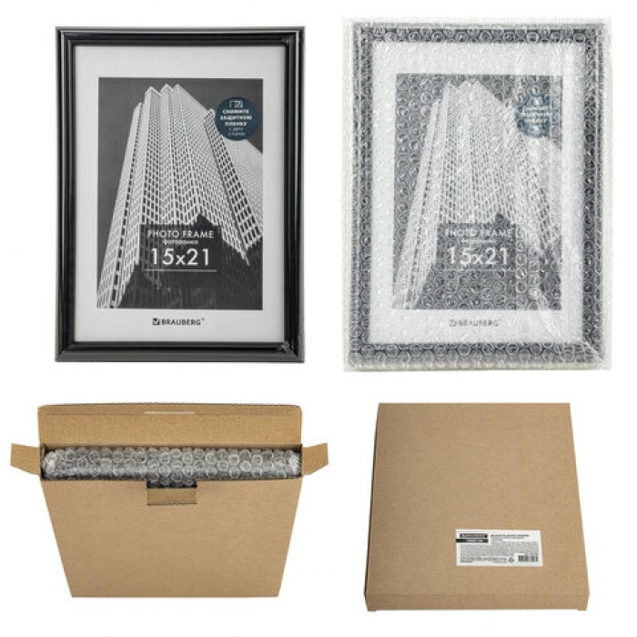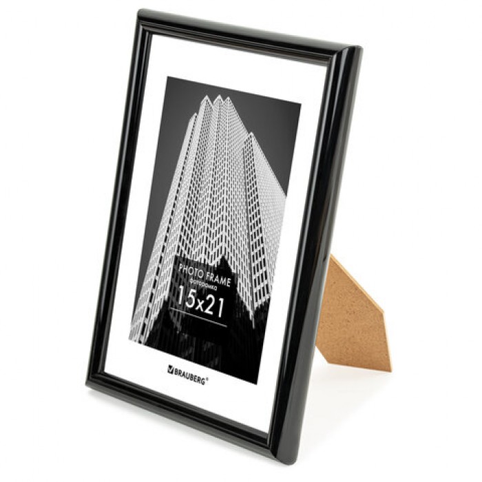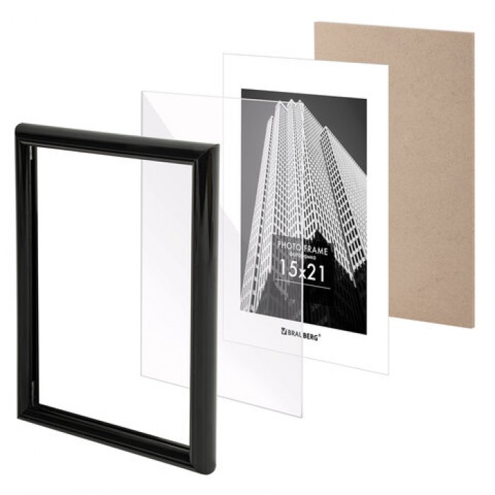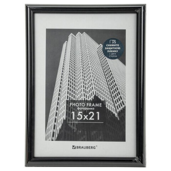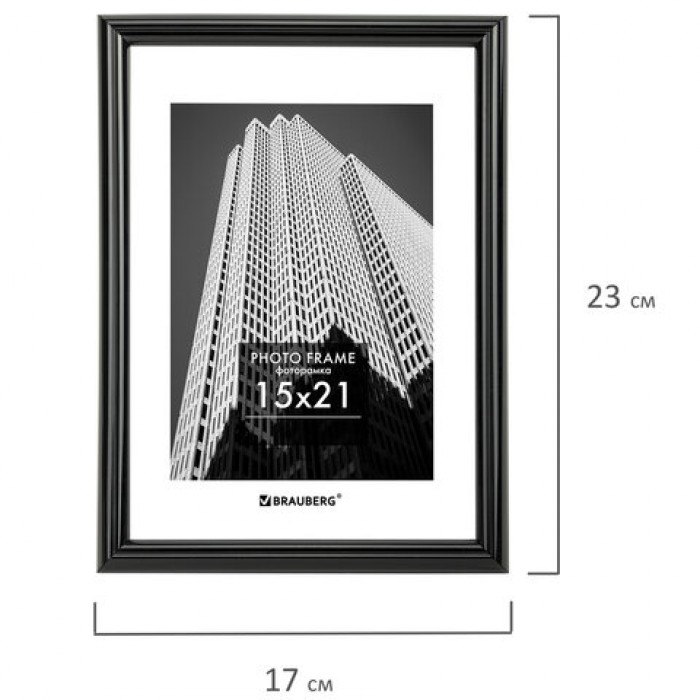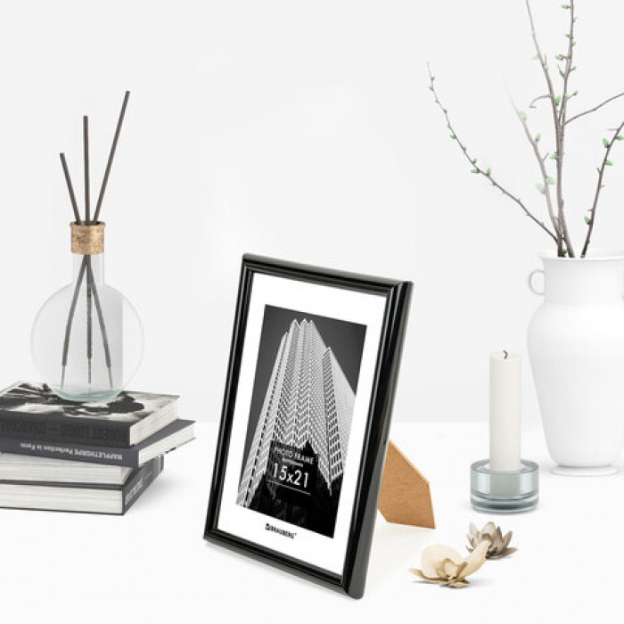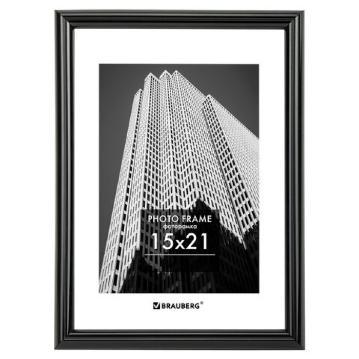 Рамка 15х21 см небьющаяся, багет 14 мм, пластик, BRAUBERG "Original", черная, 391228