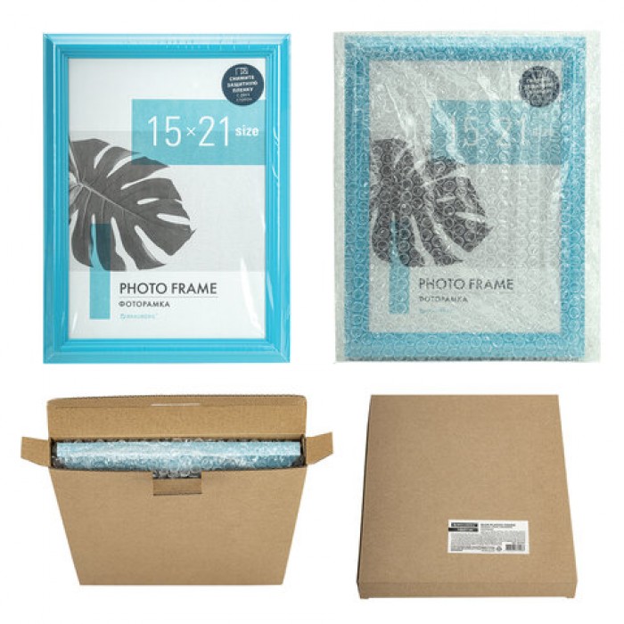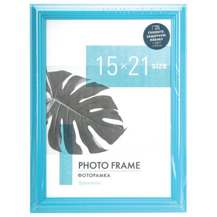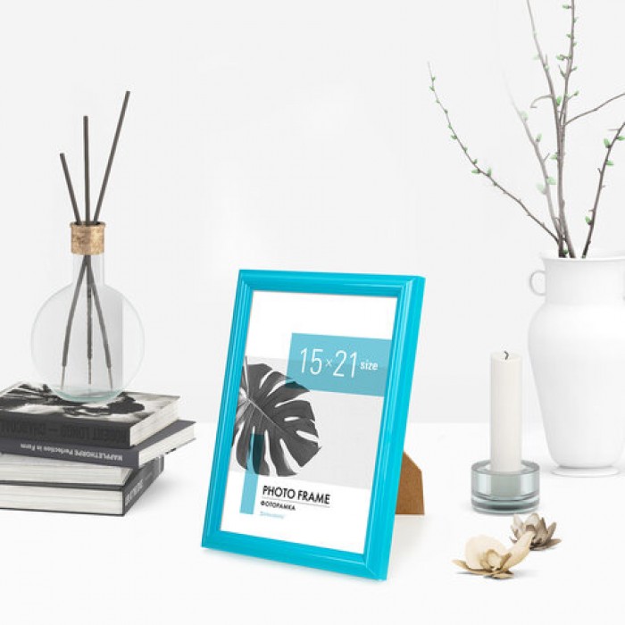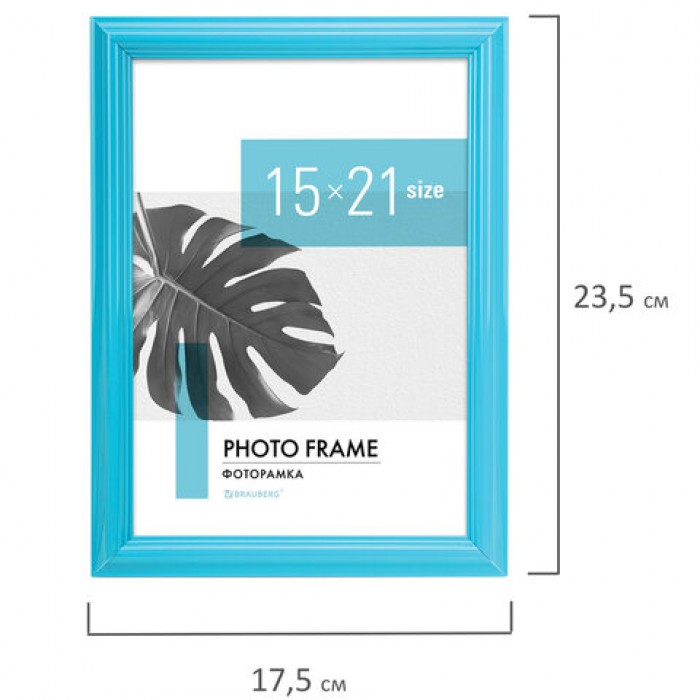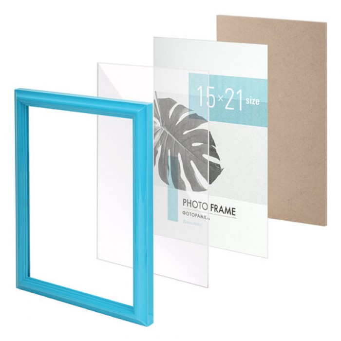 Рамка 15х21 см небьющаяся, багет 17,5 мм, пластик, BRAUBERG "Colorful", голубая, 391237