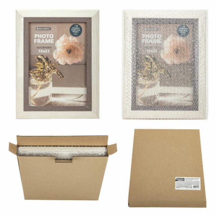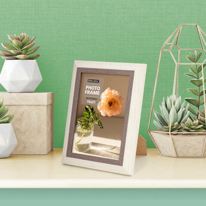 Рамка 15х21 см небьющаяся, багет 30 мм, пластик, BRAUBERG "Lambert", слоновая кость/капучино, 391250