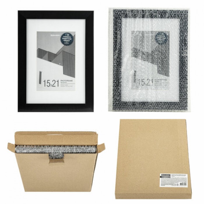Рамка 15х21 см с паспарту 10х15 см небьющаяся, багет 20 мм, пластик, BRAUBERG "New Age", черная, 391273