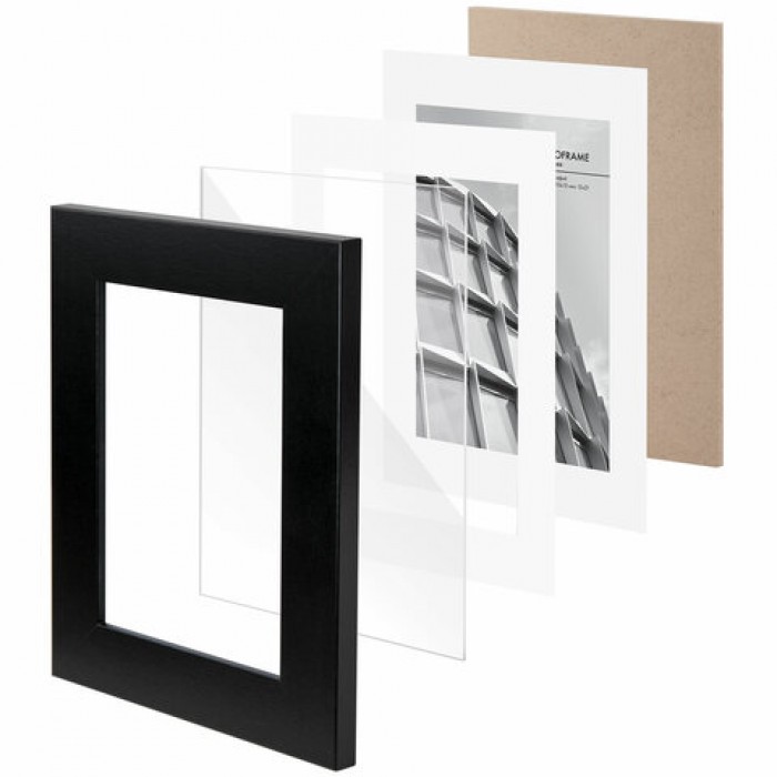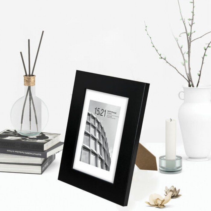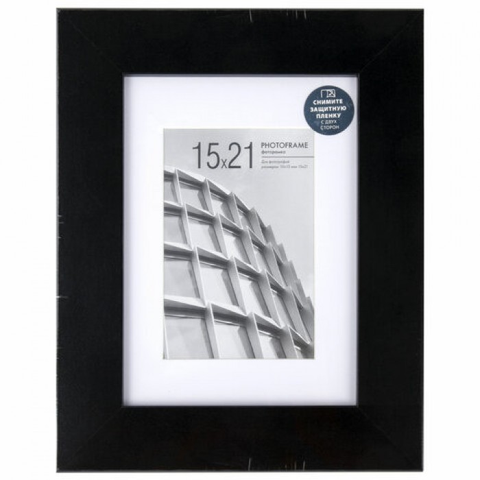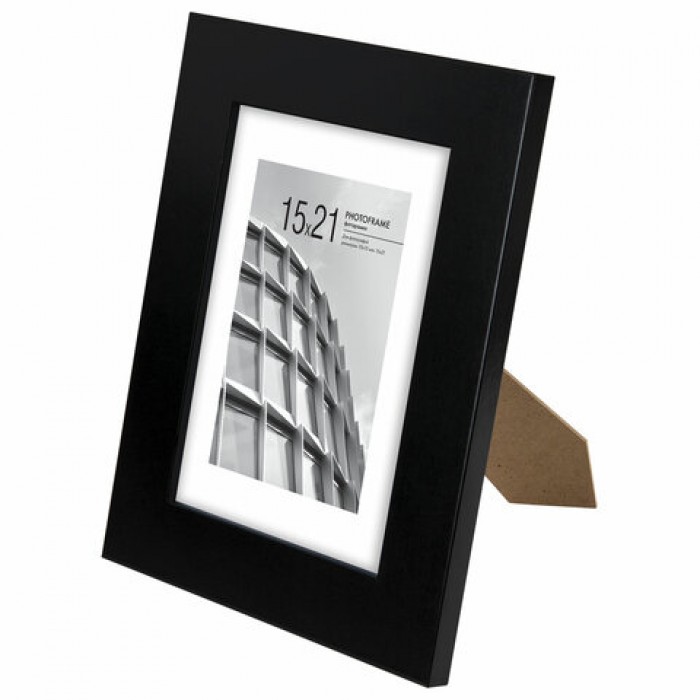 Рамка 15х21 см с паспарту 10х15 см небьющаяся, багет 40 мм, МДФ, BRAUBERG "Malcolm", черная, 391268
