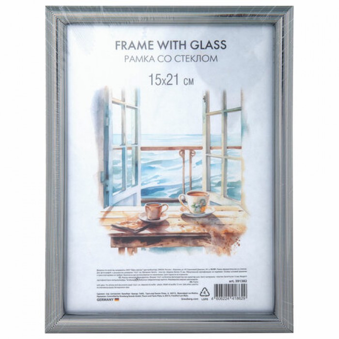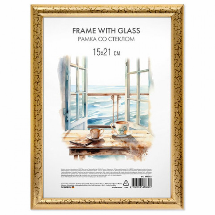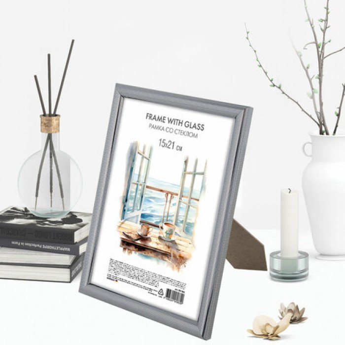 Рамка 15х21 см со стеклом, багет 15 мм, пластик, BRAUBERG "HIT3", 5 цветов ассорти, 391382