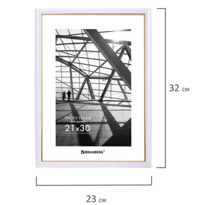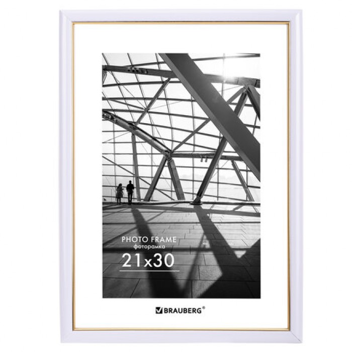 Рамка 21х30 см небьющаяся, багет 14,6 мм, пластик, BRAUBERG "Original Line", белая/золото, 391236