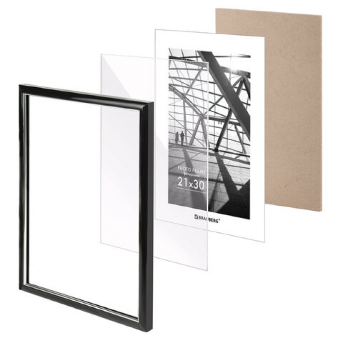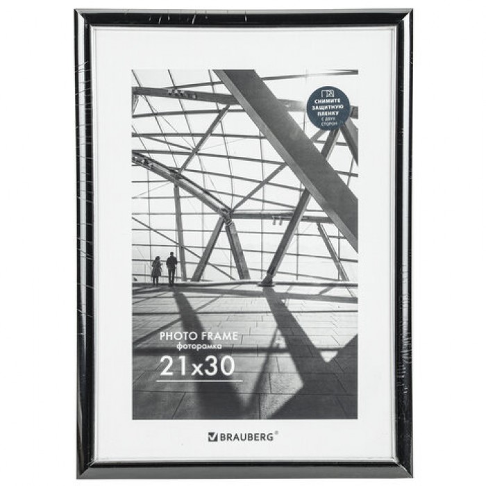 Рамка 21х30 см небьющаяся, багет 14,6 мм, пластик, BRAUBERG "Original Line", черная/серебро, 391234