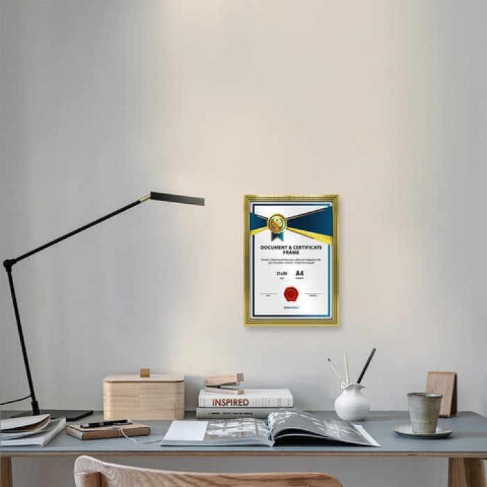 Рамка 21х30 см небьющаяся, багет 15 мм пластик, BRAUBERG "Respect", золотистая, 391272