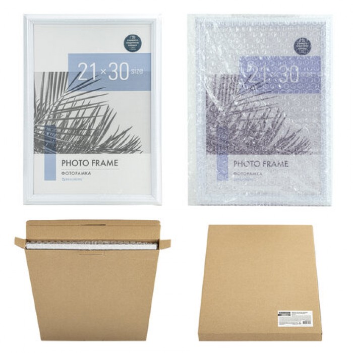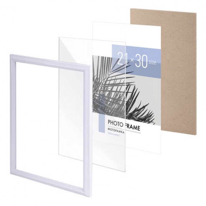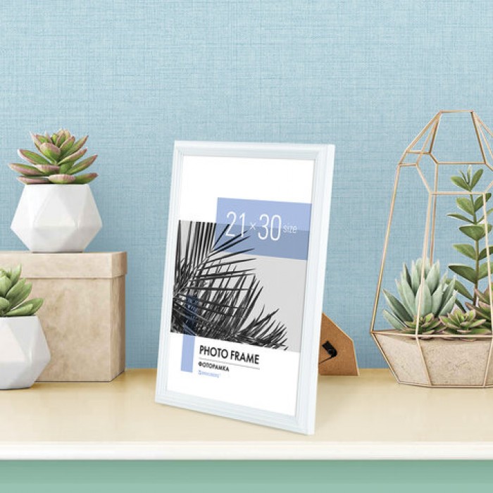 Рамка 21х30 см небьющаяся, багет 17,5 мм, пластик, BRAUBERG "Colorful", белая, 391241