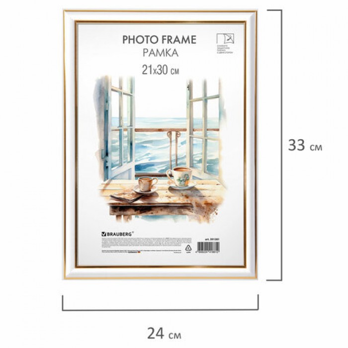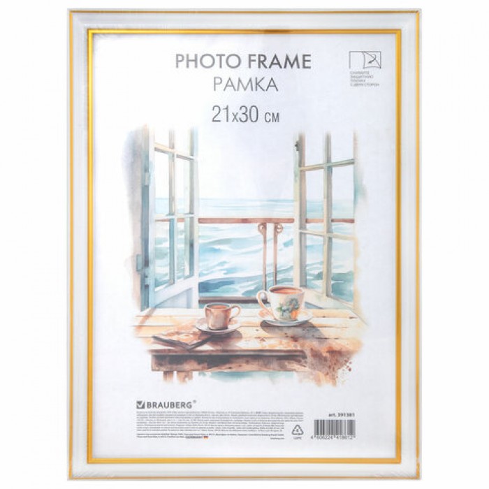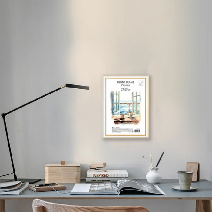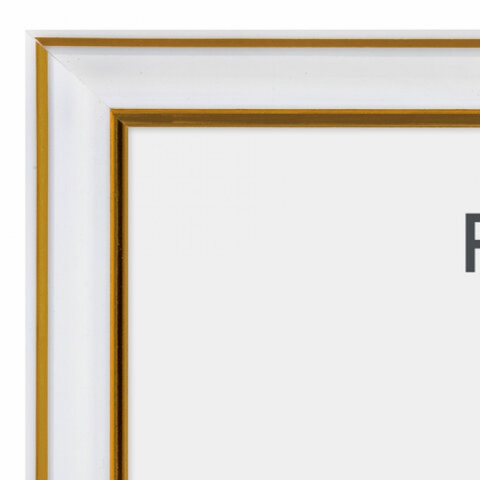 Рамка 21х30 см небьющаяся, багет 20 мм, пластик, BRAUBERG "HIT3", белая с двойной позолотой, 391381