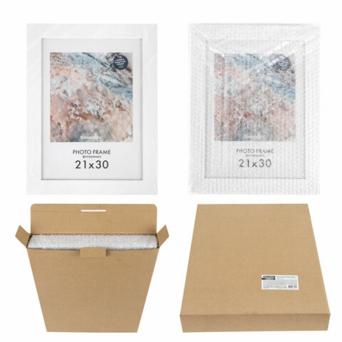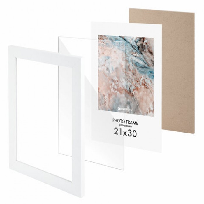 Рамка 21х30 см небьющаяся, КОМПЛЕКТ 3 шт., багет 29 мм, МДФ, BRAUBERG "Basic", белая, 391260