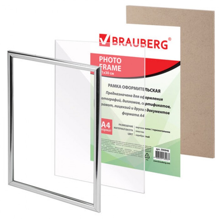 Рамка BRAUBERG "HIT2" для оформления фотографий, дипломов, сертификатов, грамот, лицензий и других документов формата А4 (21х30 см) будет гармонично смотреться в любом интерьере - дома и офисе, учебных учреждениях и магазинах, салонах и предприятий и др.