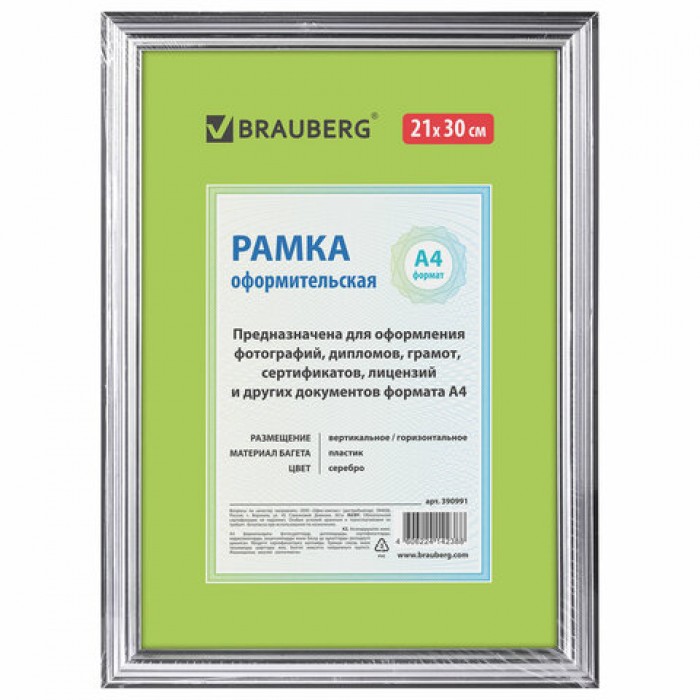 Рамка BRAUBERG "HIT3" для оформления фотографий, дипломов, сертификатов, грамот, лицензий и других документов формата А4 (21х30 см) будет гармонично смотреться в любом интерьере - дома и офисе, учебных учреждениях и магазинах, салонах и предприятий и др.