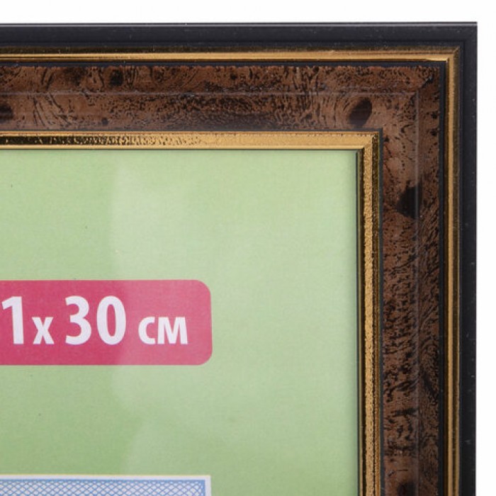 Рамка 21х30 см, пластик, багет 20 мм, BRAUBERG "HIT3", темный орех с двойной позолотой, стекло, 390985