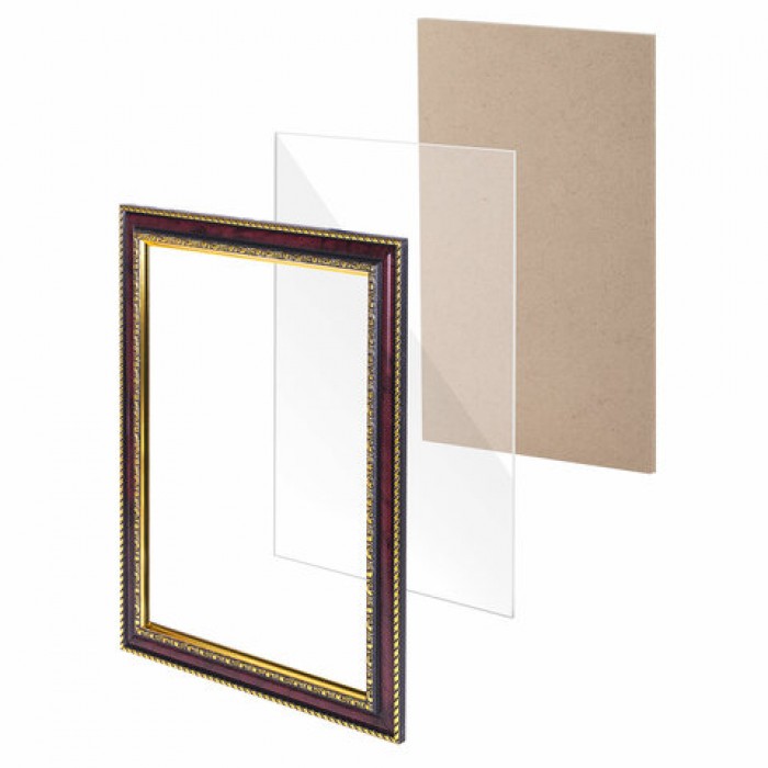 Рамка 21х30 см, пластик, багет 30 мм, BRAUBERG "HIT4", красное дерево с двойной позолотой, стекло, 390996