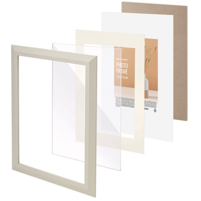 Рамка 21х30 см с паспарту 13х18 см, небьющаяся, аналог IKEA, багет 26 мм, МДФ, BRAUBERG "Zool", серая, 391377