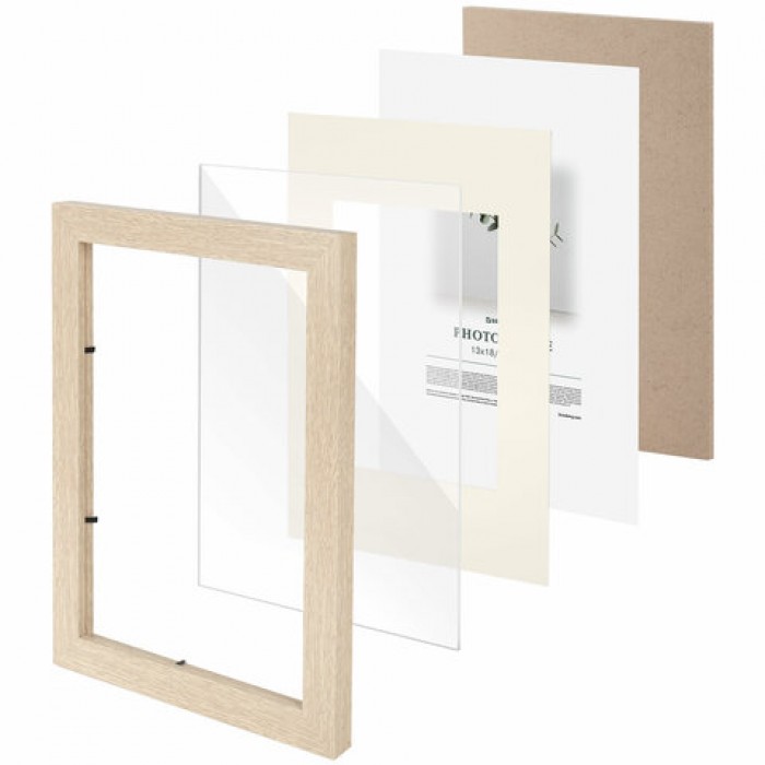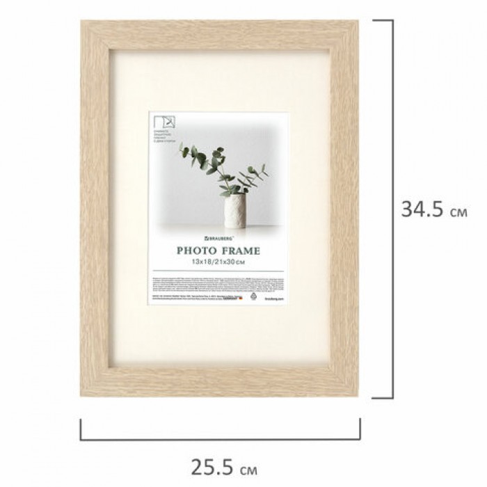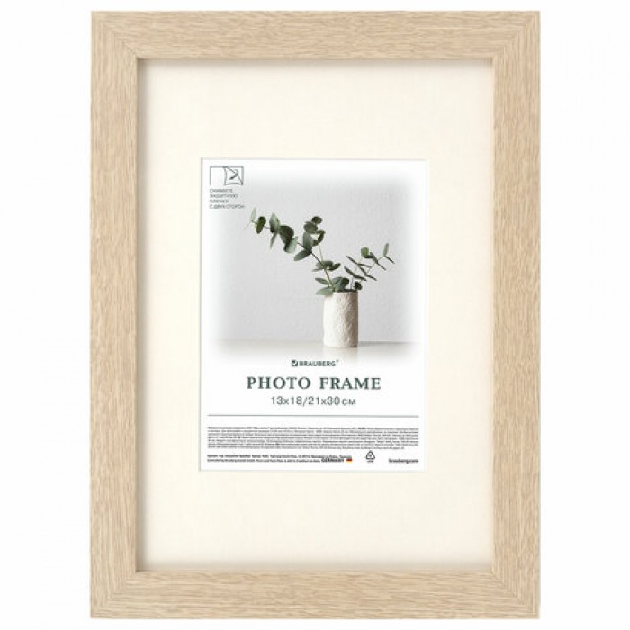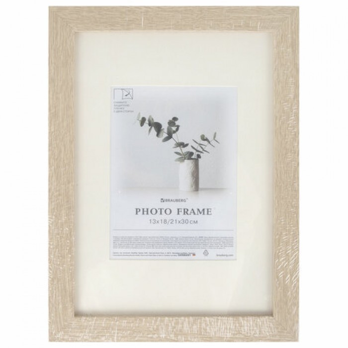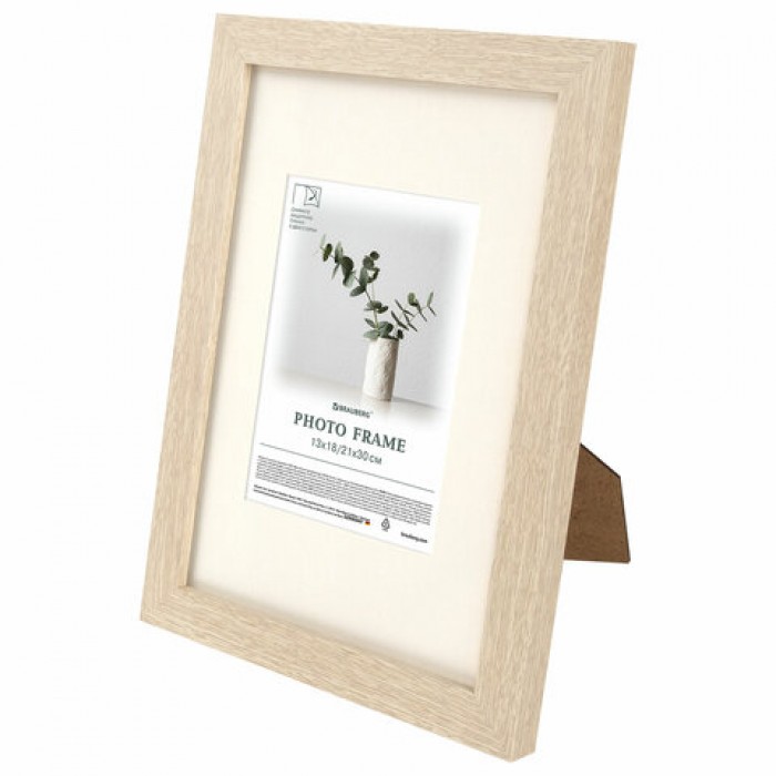 Рамка 21х30 см с паспарту 13х18 см, небьющаяся, багет 26 мм, МДФ, BRAUBERG "Ambassador", цвет дуб, 391367