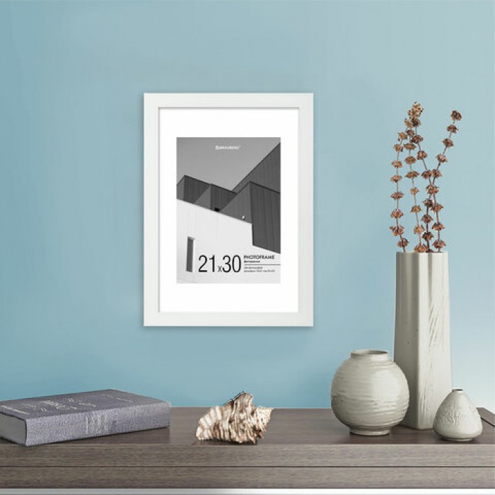 Рамка 21х30 см с паспарту 15х21 см небьющаяся, багет 20 мм пластик, BRAUBERG "New Age", белая, 391276