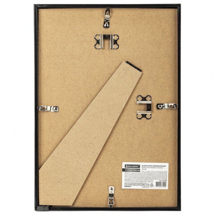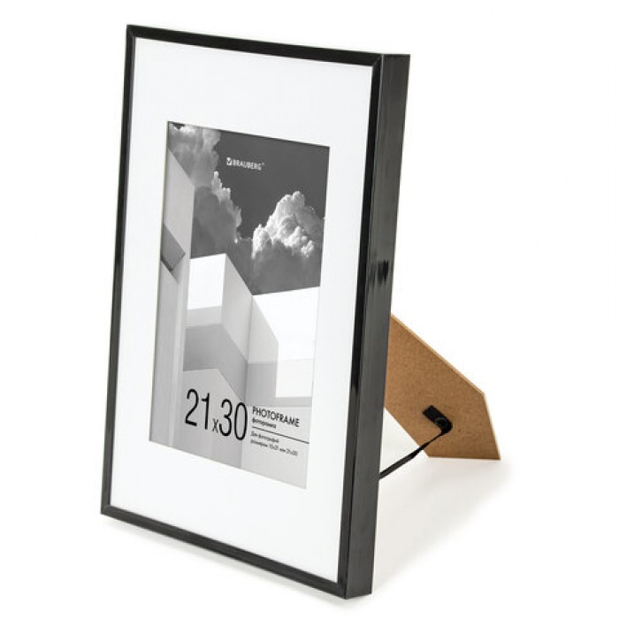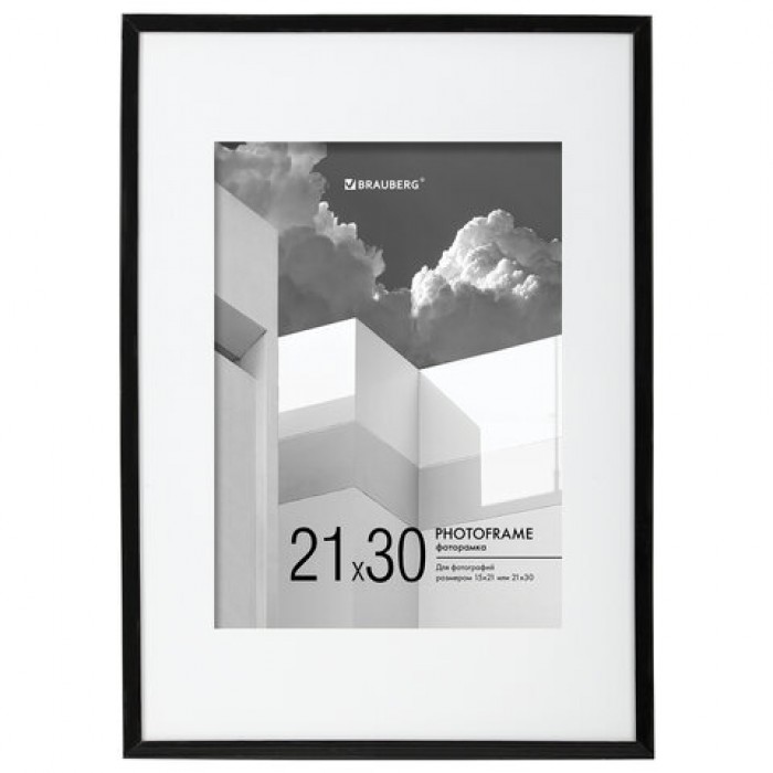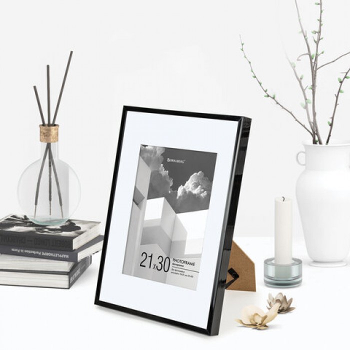 Рамка 21х30 см с паспарту 15х21 см небьющаяся, багет 5 мм, пластик, BRAUBERG "Smart", черная, 391280