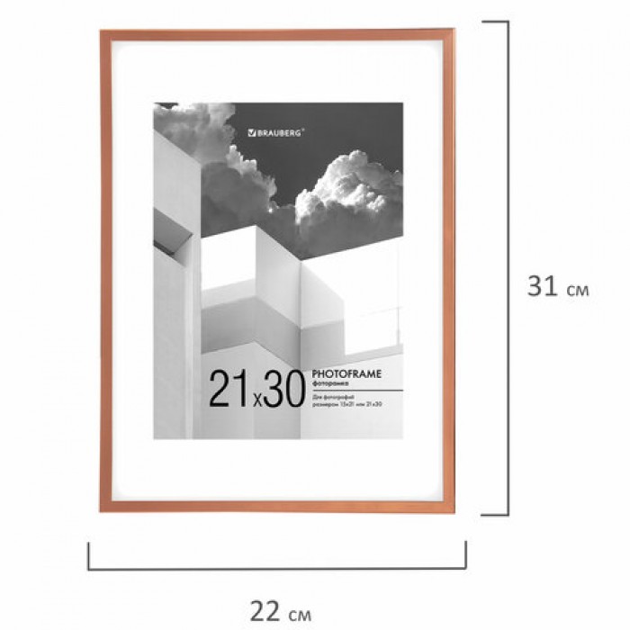 Рамка для фото BRAUBERG "Smart", выполненная в необычном узком золотистом багете с изюминкой в виде паспарту, идеально впишется как в классический, так и в современный интерьер.