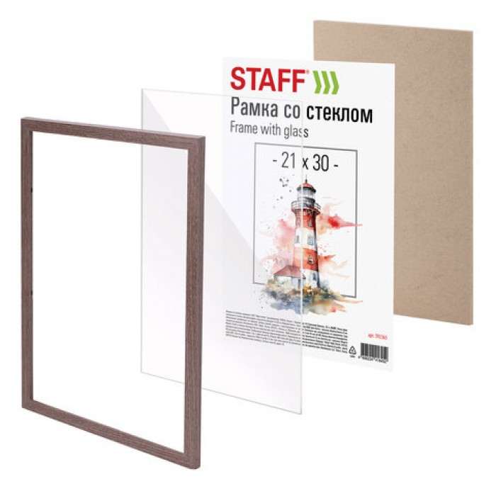 Рамка 21х30 см со стеклом, багет 12 мм, пластик под МДФ, STAFF "Benefit", цвет капучино, 391365