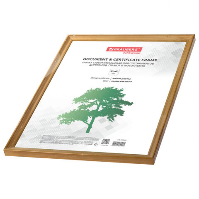 Рамка 30х40 см, дерево, багет 18 мм, BRAUBERG "HIT", канадская сосна, стекло, 390026